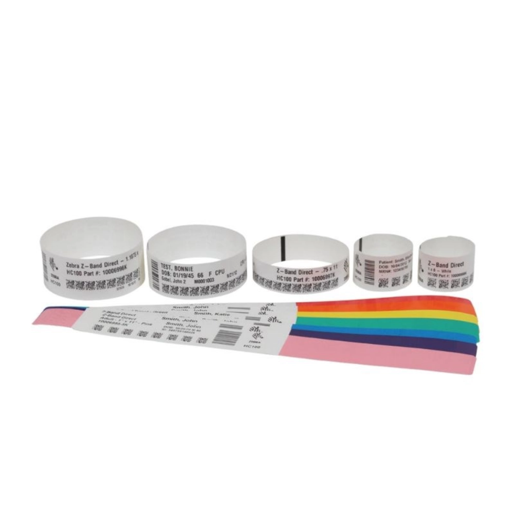 CARTUCHO DE BRAZALETES PLASTICOS TERMICOS ZEBRA PARA IMPRESORAS HC100 Y ZD510-HC. 1X10 PULGADAS, 350 UNIDADES POR ROLLO, CAJA DE 6 ROLLOS. COLOR AZUL.