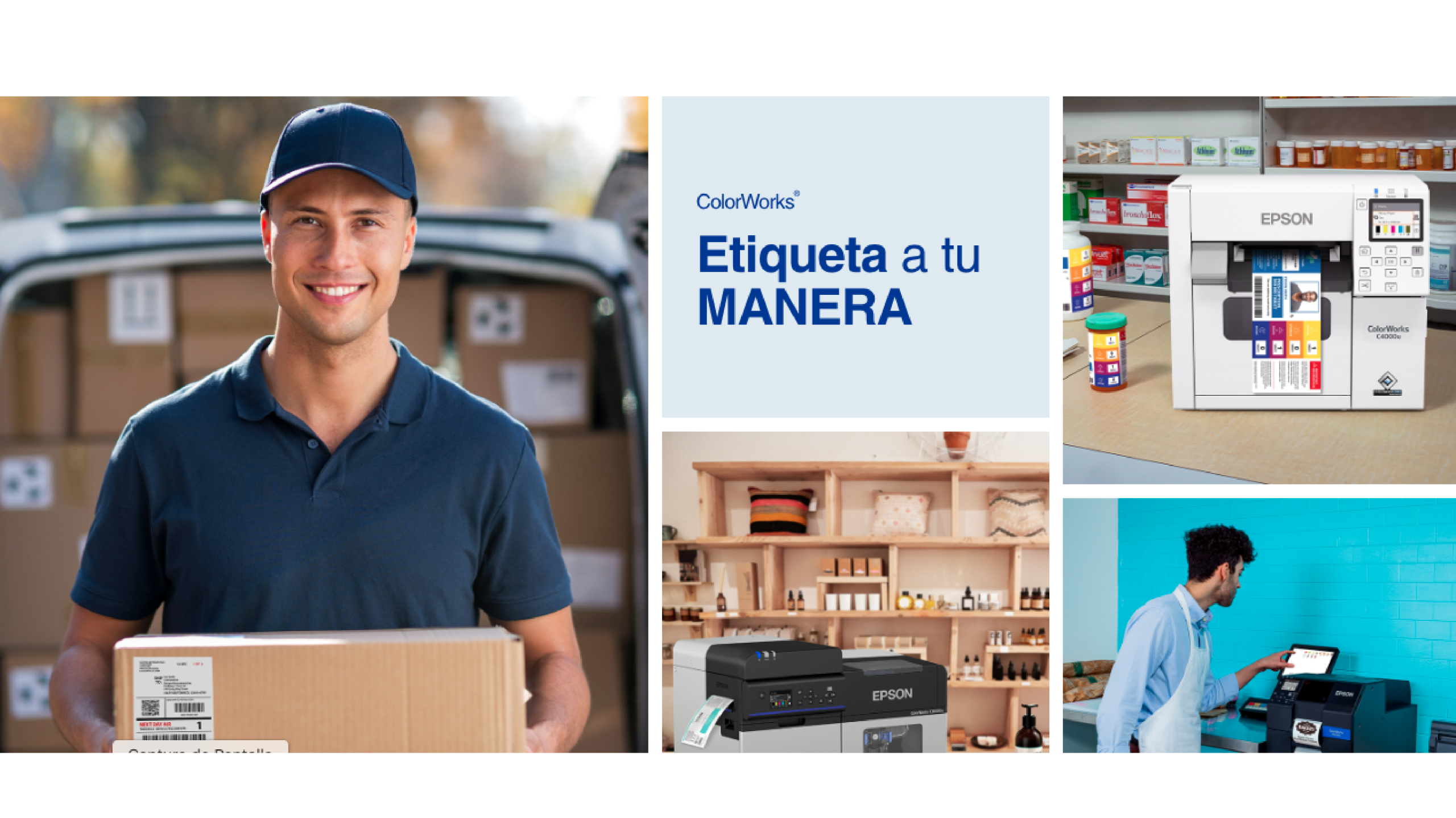 - Calidad de Impresión Superior: Las impresoras ColorWorks utilizan la tecnología de inyección de tinta PrecisionCore de Epson, conocida por su capacidad para producir colores vivos y nítidos en etiquetas resistentes al agua y a la decoloración.